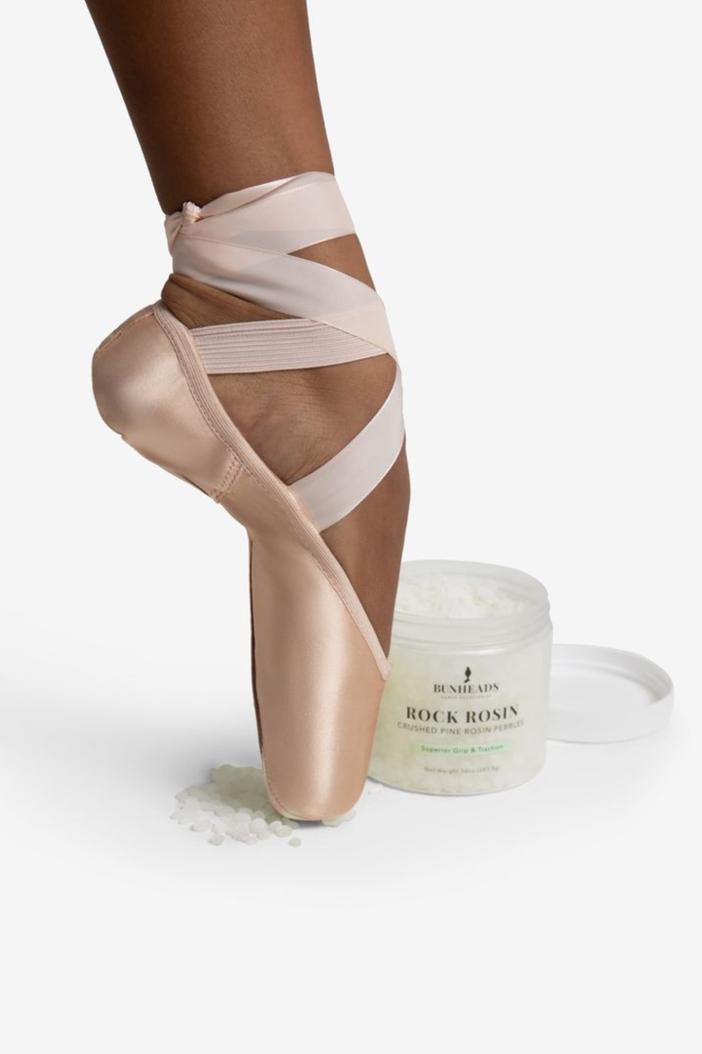 The BunHeads Rock Rosin gives dancers improved traction and control for better performance on the floor. Made from 100% pure pine white rosin in convenient 10 mm beads, it’s easy to crush and helps maximise both grip and spin, all stored in a handy round plastic jar.